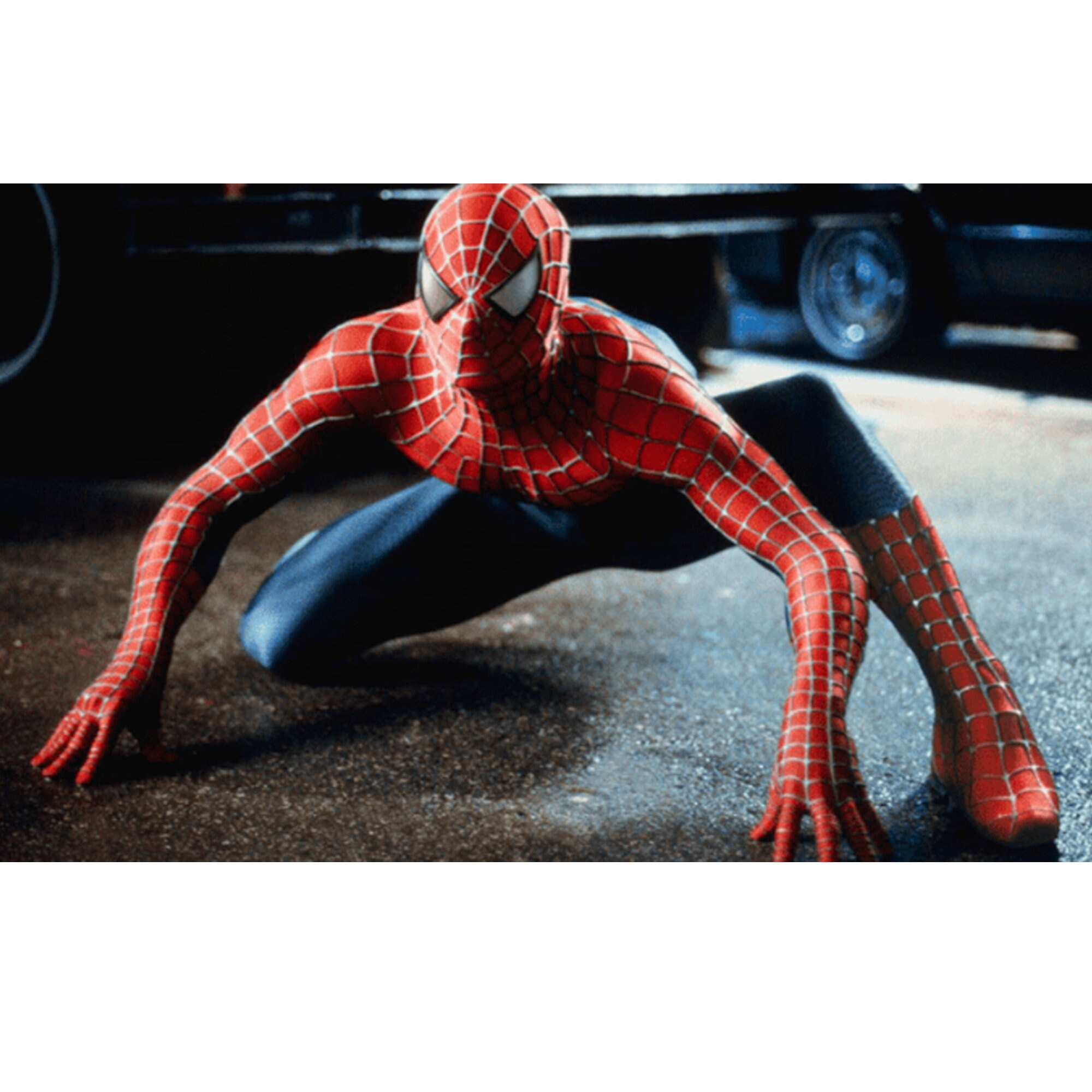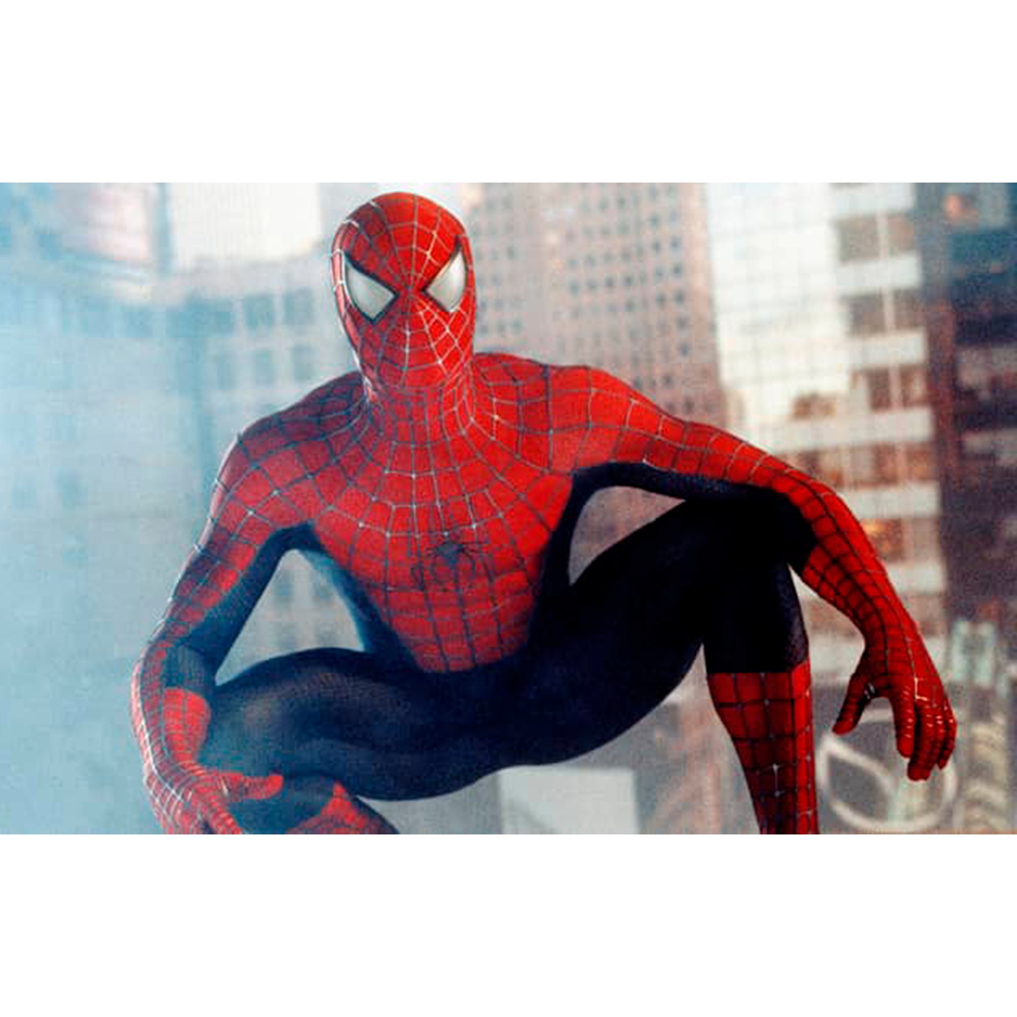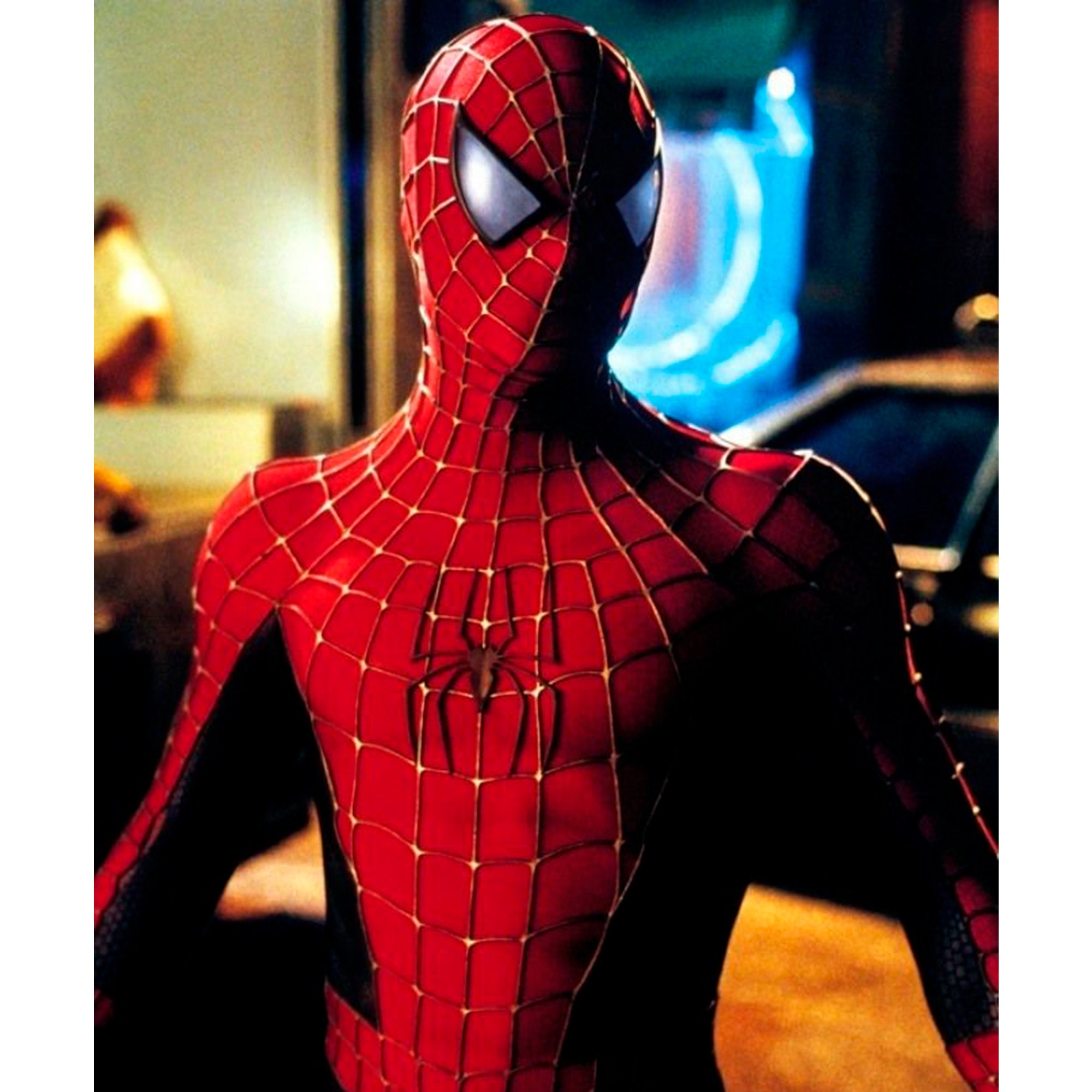This pattern reflects Spidey's look from the Box Office hit Spider-Man (2002) directed by Sam Raimi