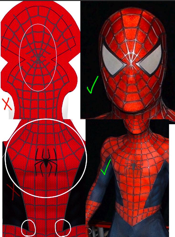 The webbing patterns around the face and chest wrong, the lower blue edges around the waist isn’t connect to the web as it is off, and please pay close attention to the accurate 2002 suit carefully.